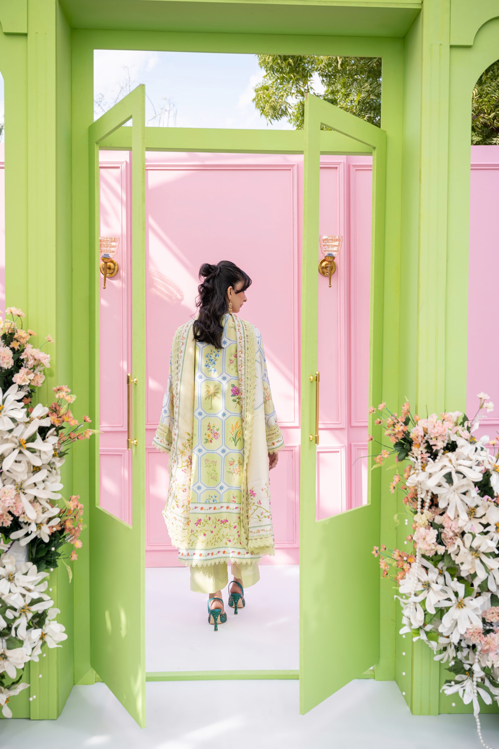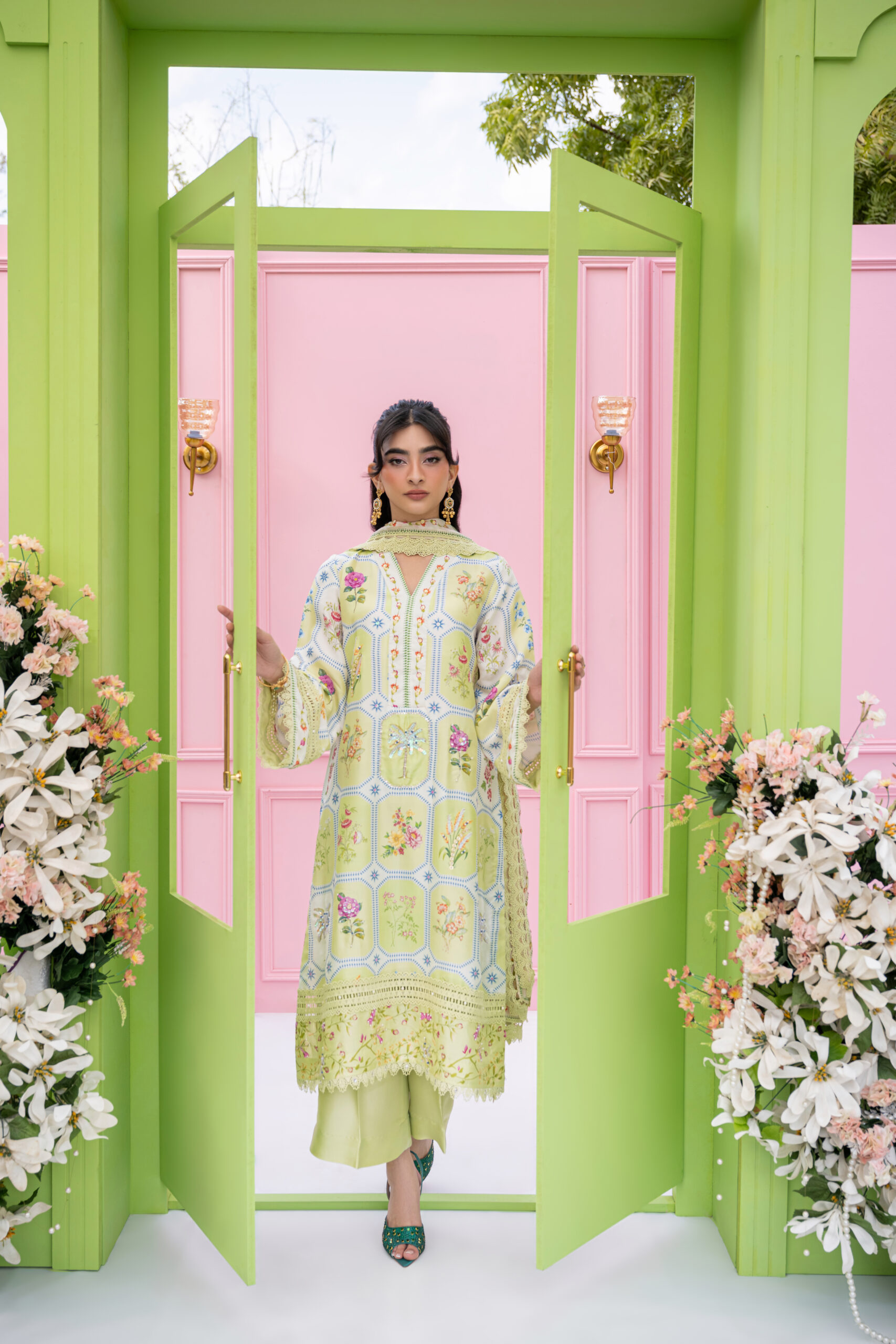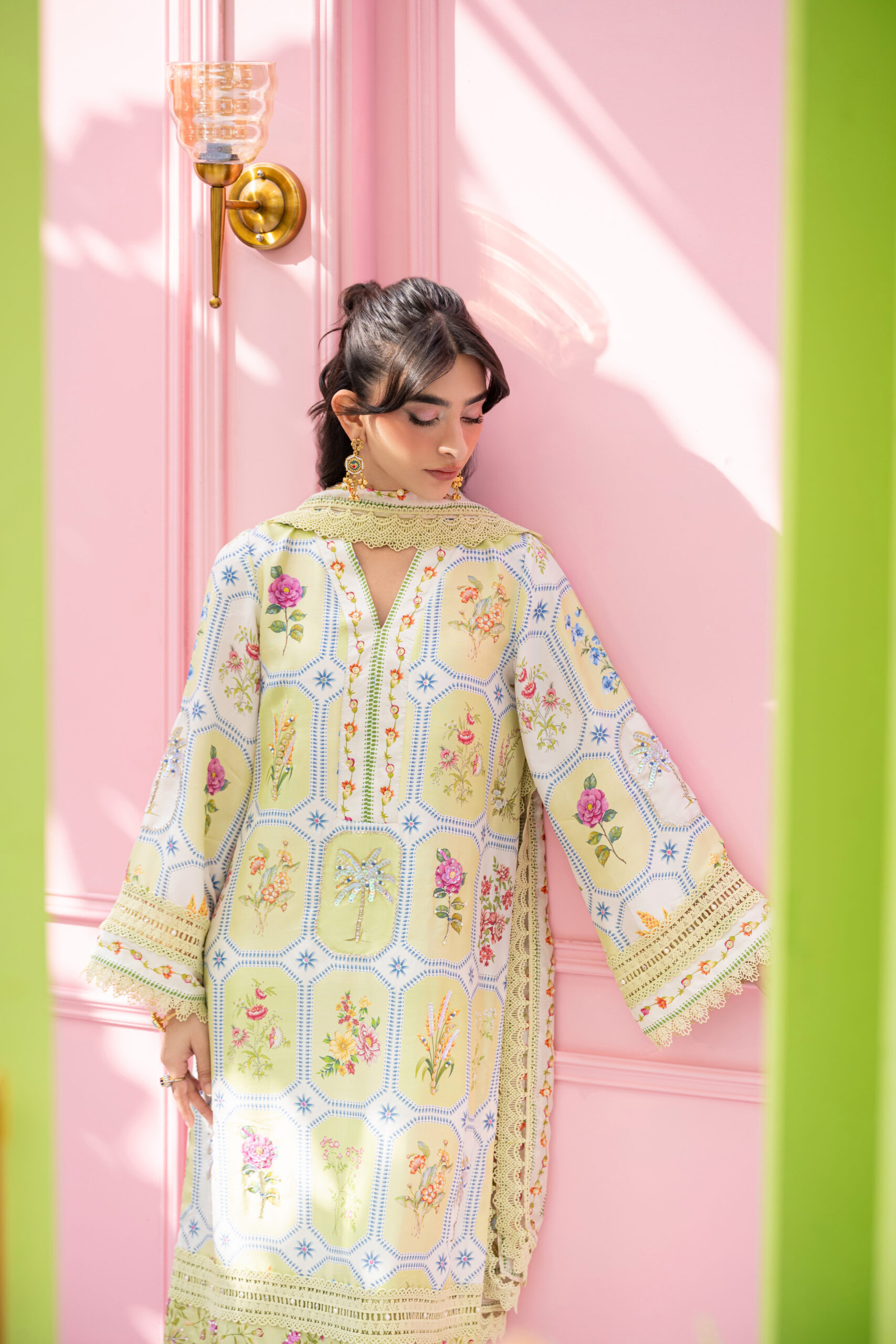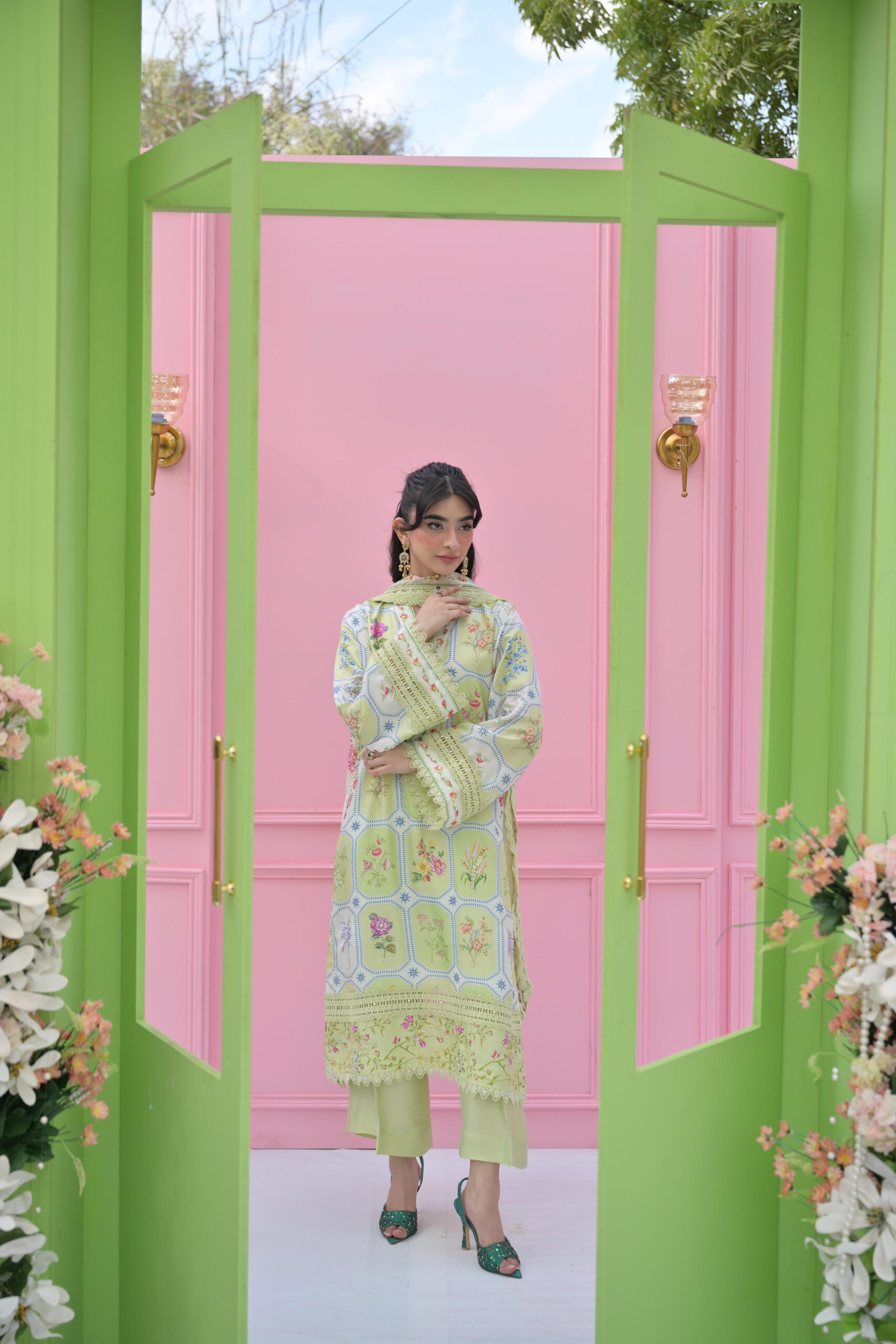 Step into Eid in Style – This is pure 80gram Raw Silk outfit features vibrant prints adorned with delicate handwork – stones, sequins and gota – creating a perfect blend of elegance and sparkle. Ideal for day or night dawats, it’s a celebration-ready look you won’t want to miss.