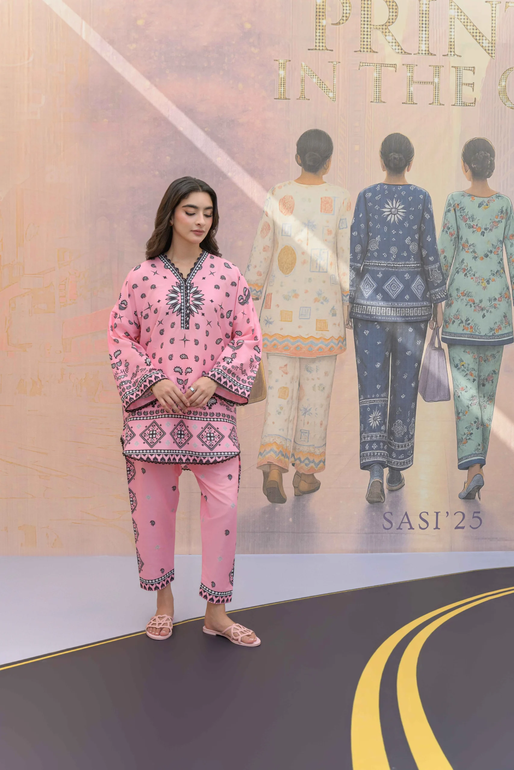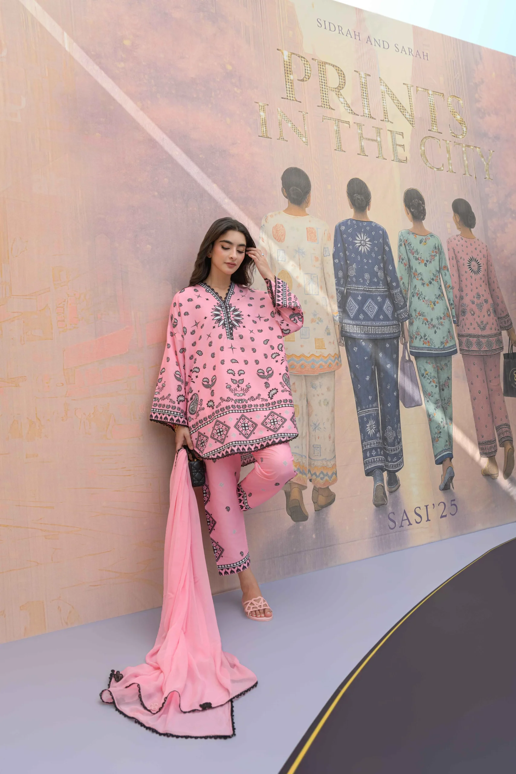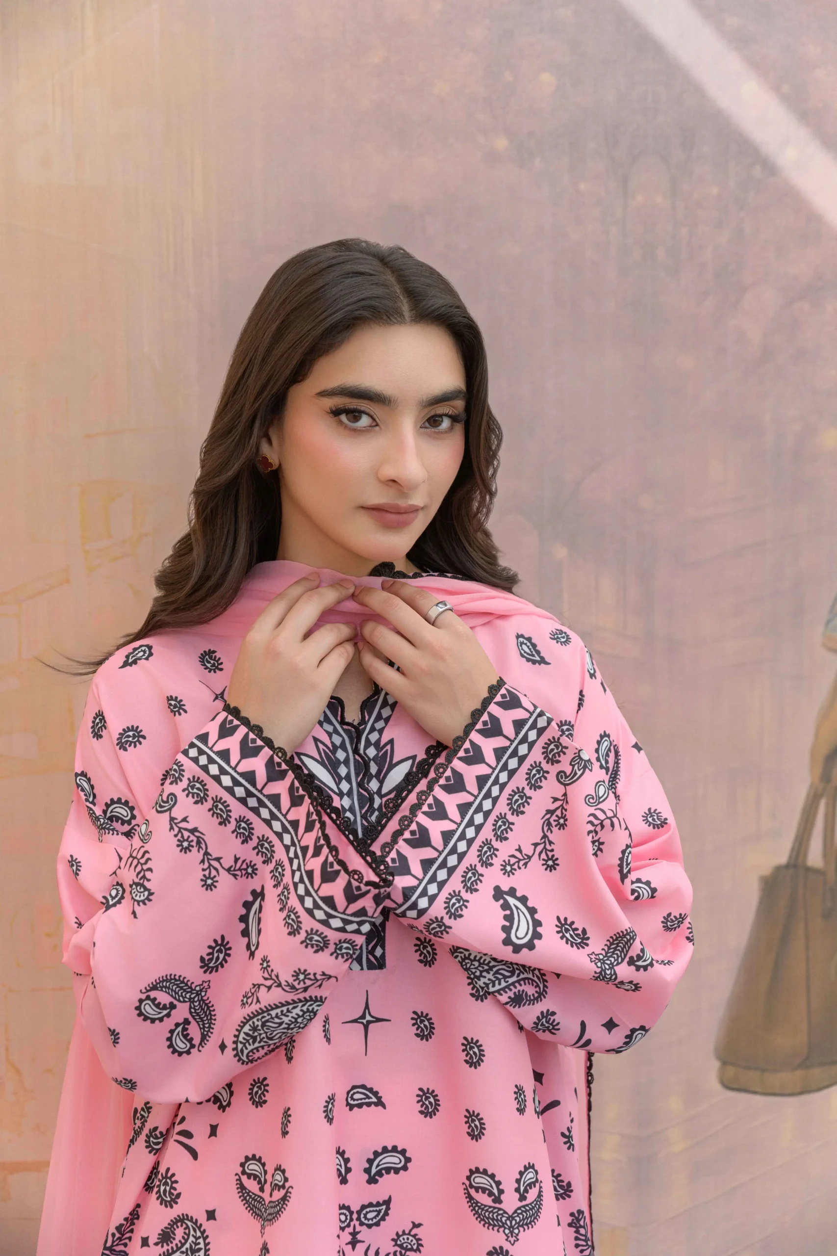 A two-piece set in our signature pink bandana print, crafted with thoughtful touches — from the neckline to the lace detailing on sleeves and hem. For a complete look, add the matching dupatta, sold separately, with 3D florals and lace for a soft statement.