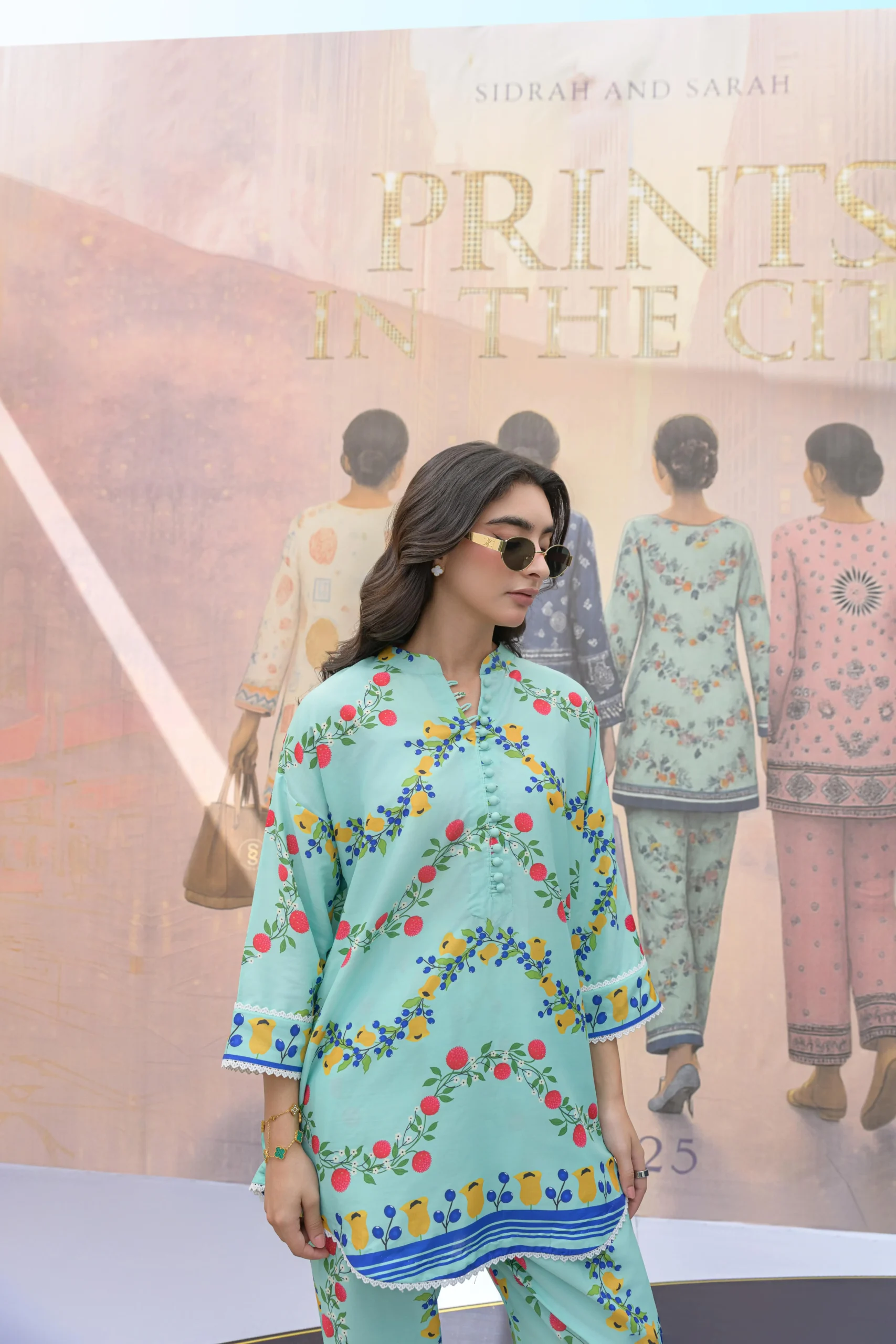 Fresh, fun, and floral — this green two-piece set is adorned with pink, yellow, and a touch of blue blooms, bringing a playful yet elegant vibe. Designed for comfort and charm, it’s your go-to for daytime outings or weekend plans.